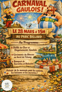 LâAPEV vous invite Ă participer au grand dĂ©filĂ© dans les rues du village, avec char, chevaux et bonne humeur au rendez-vous ! Le cortĂšge se terminera au parc Billard avec la traditionnelle crĂ©mation du Bineau, suivie dâun moment convivial autour dâun goĂ»ter.